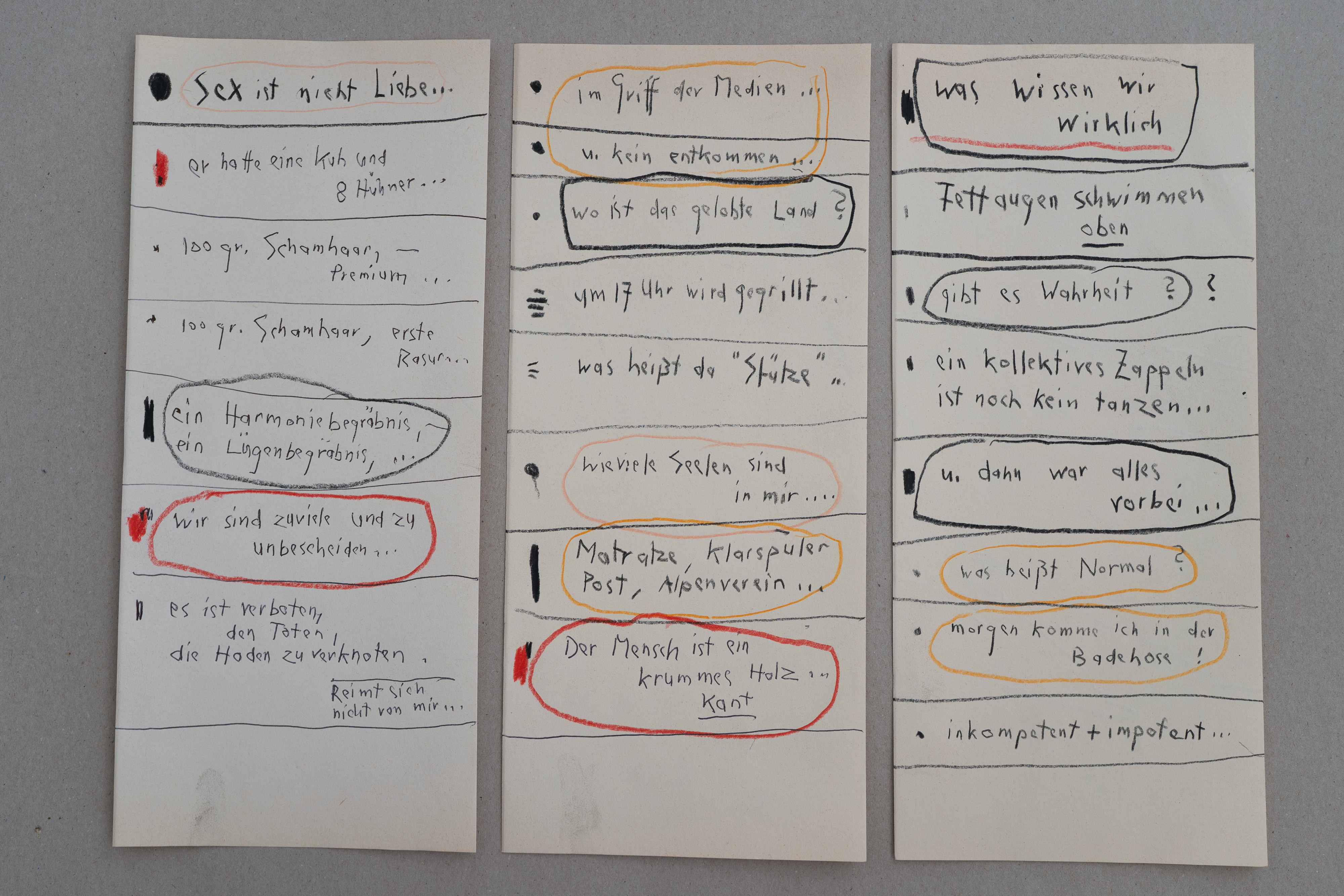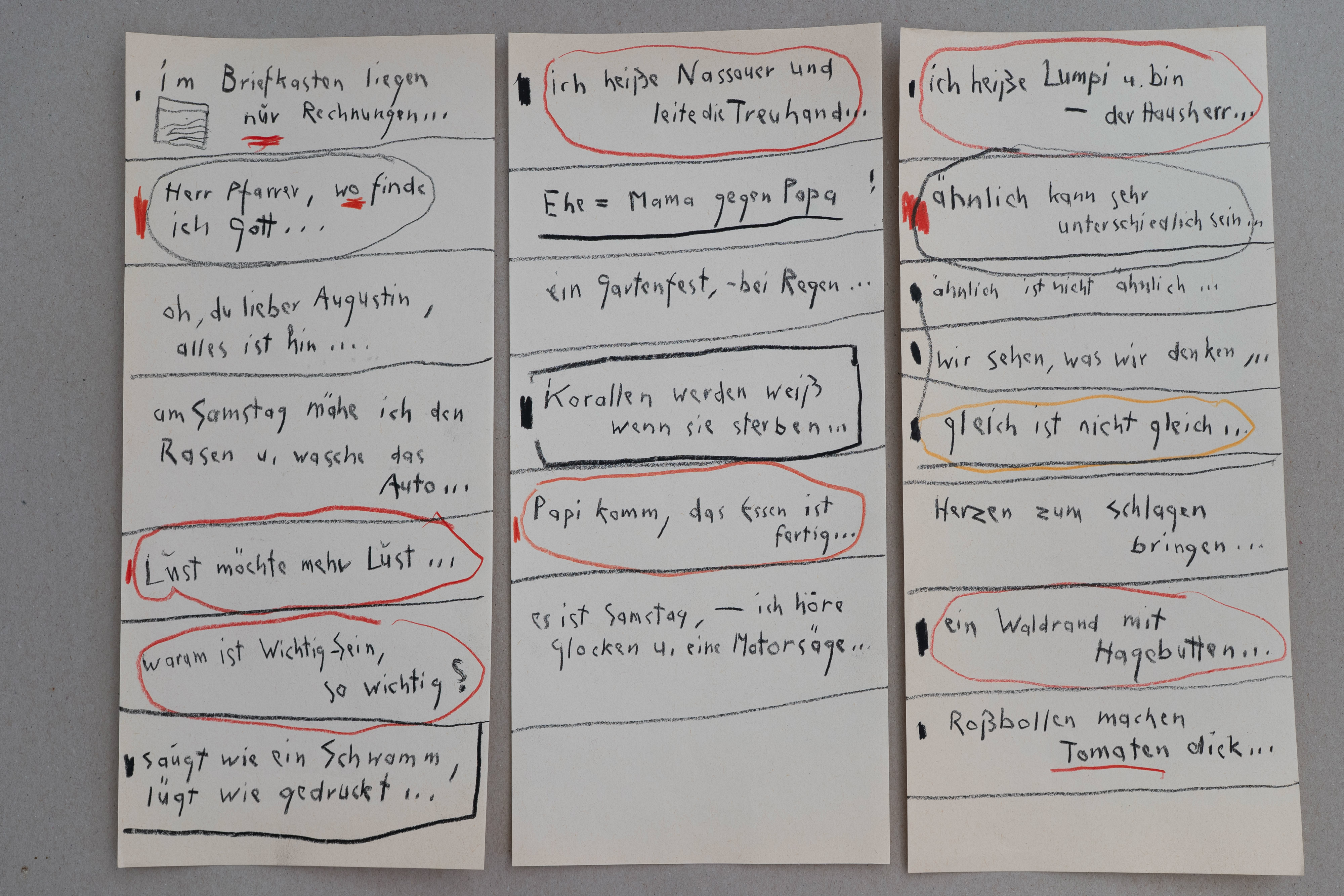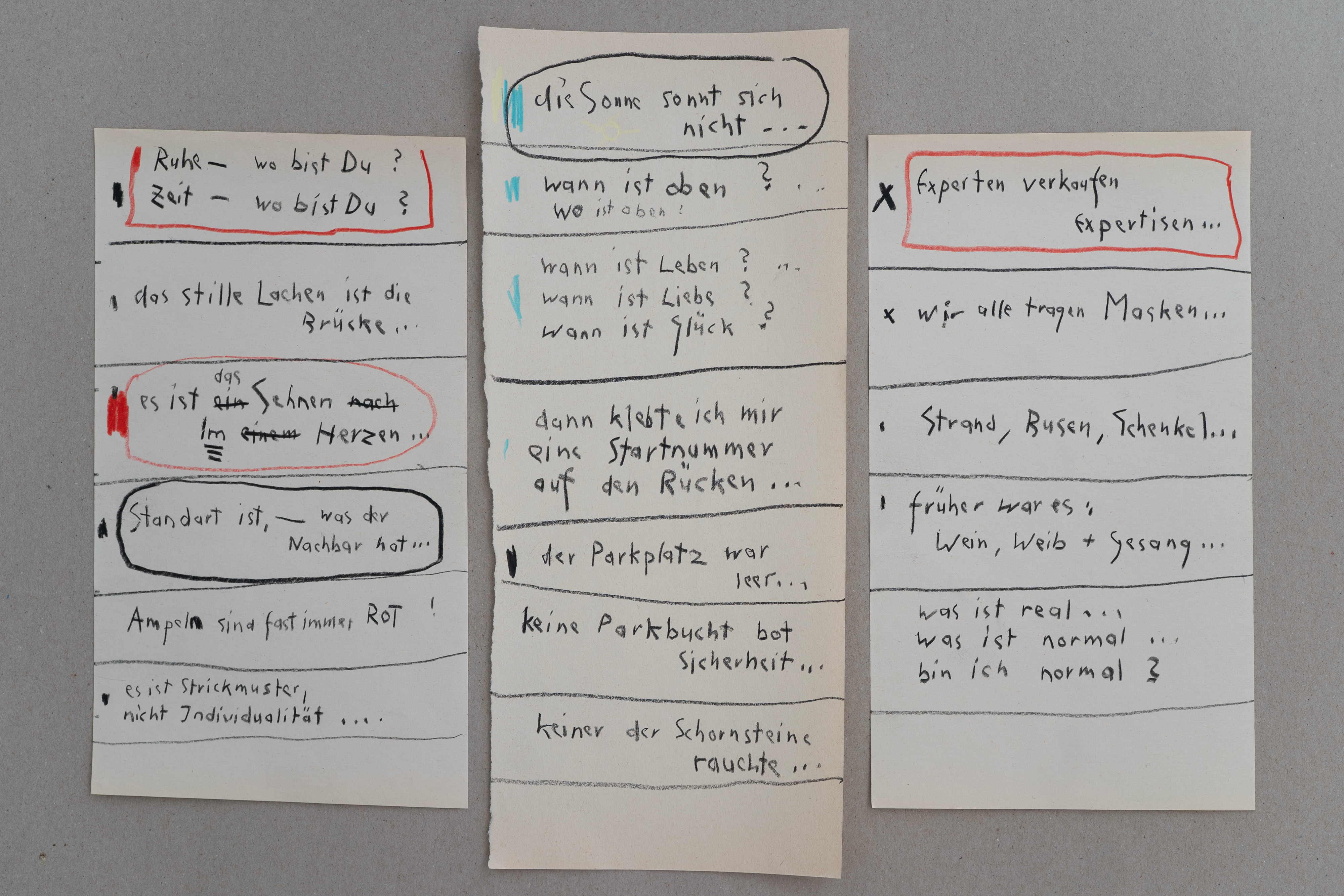 zu reflektieren, ohne Kontrolle, … später werden sie dann nicht selten zu Bildunterschriften. Ich liebe diese Art des Denkens. Diese aufgeschriebenen Gedanken erzählen mir Dinge, an die ich bewußt so nicht gedacht habe. Wahrscheinlich sind sie deshalb auch authentisch«.