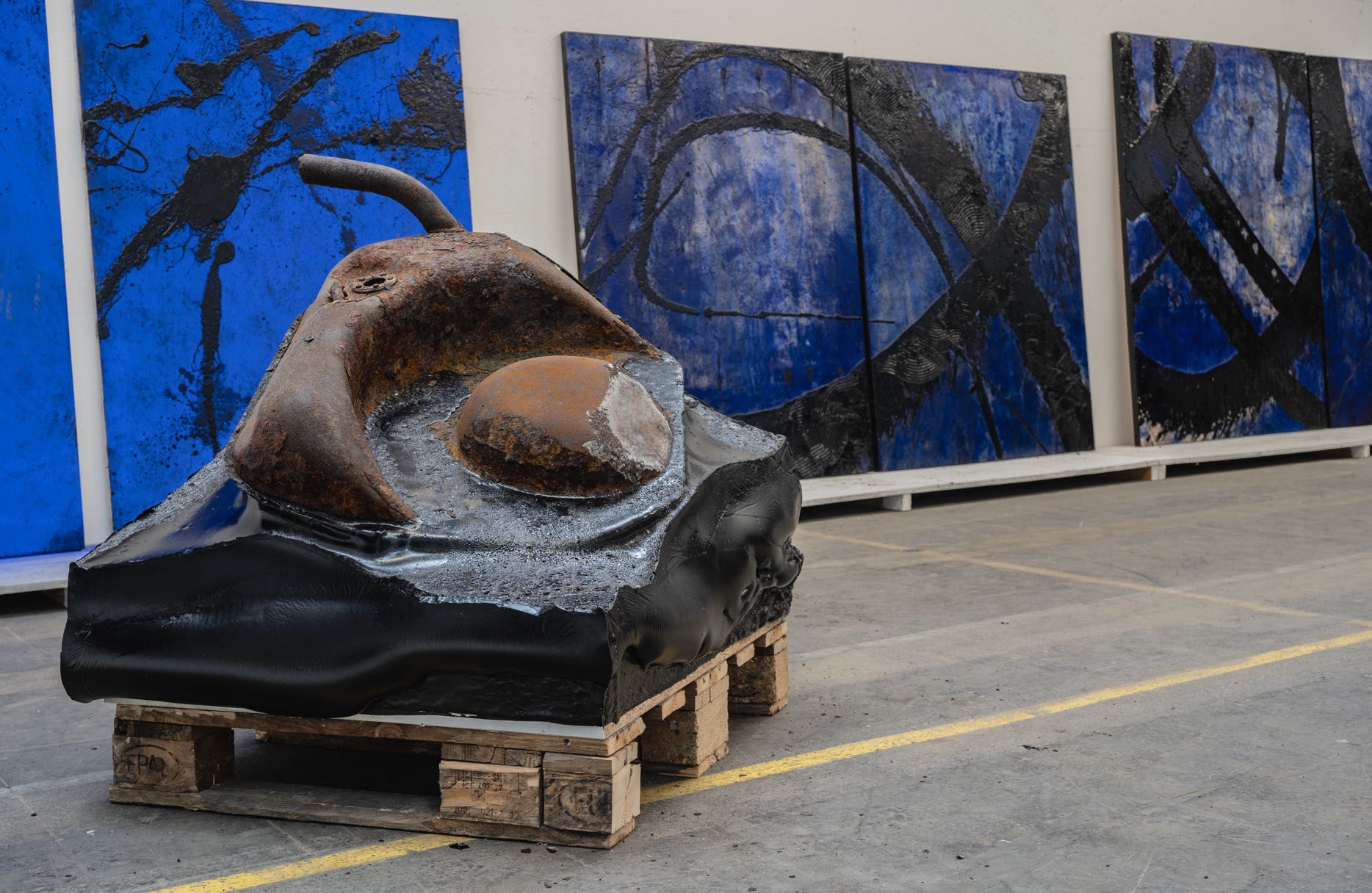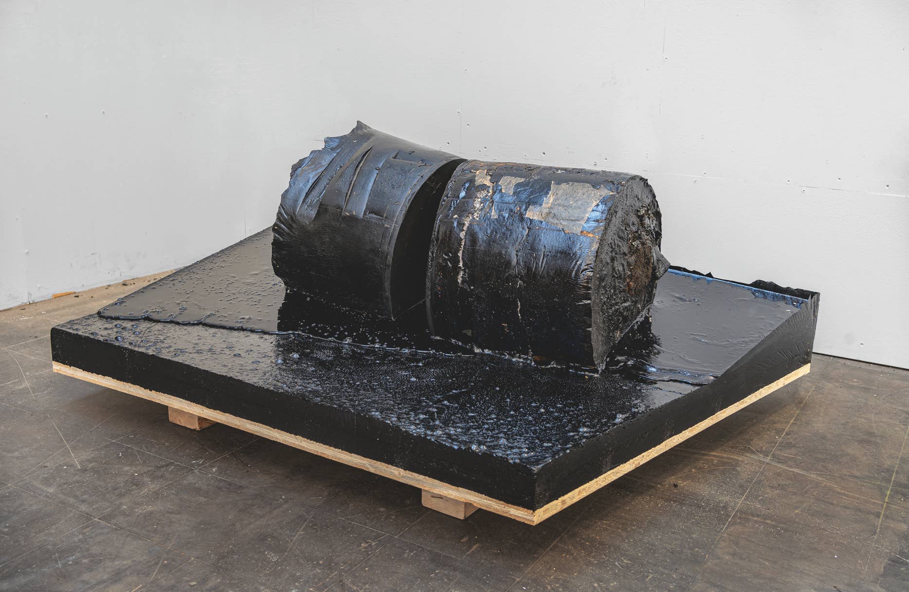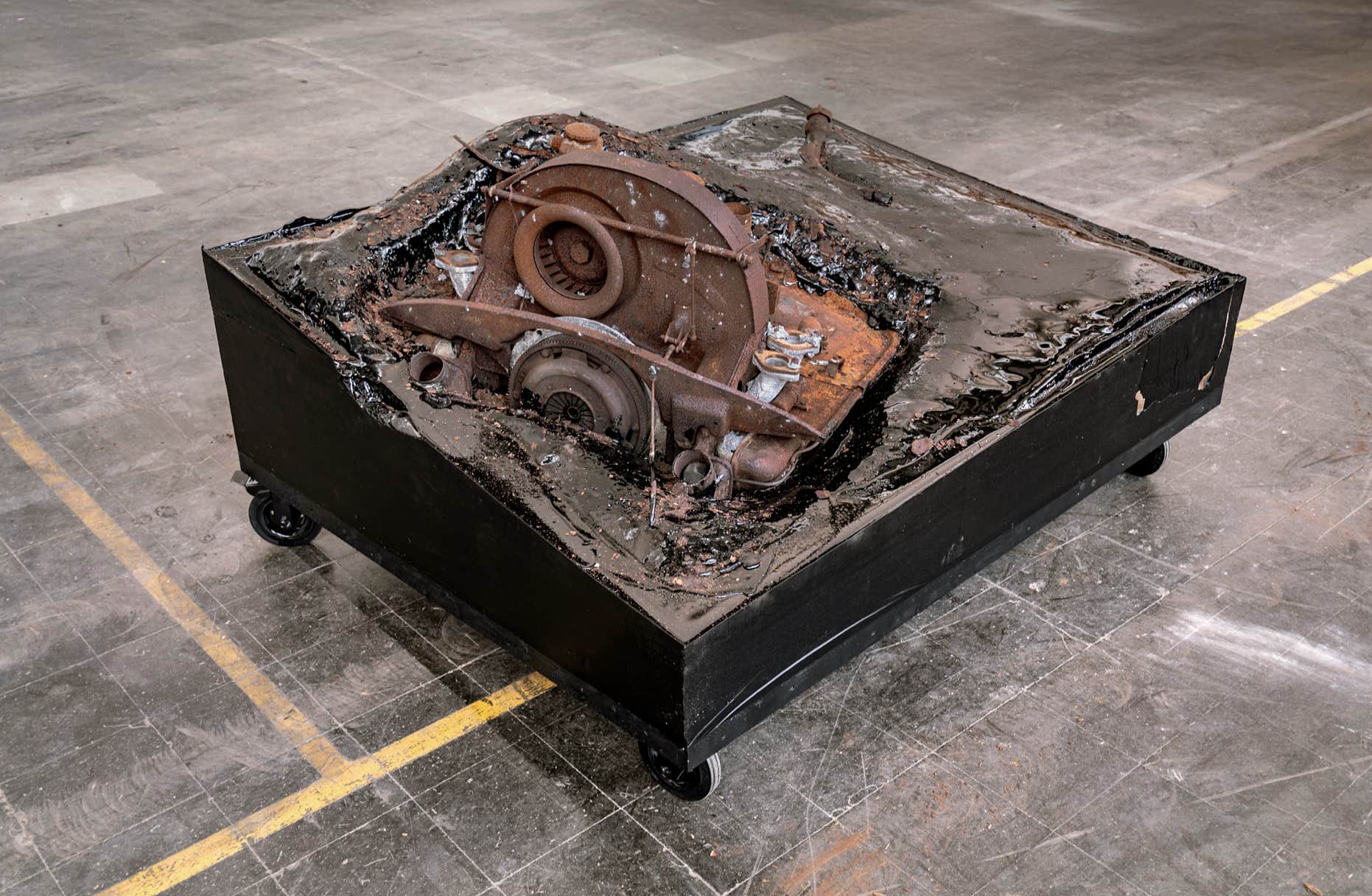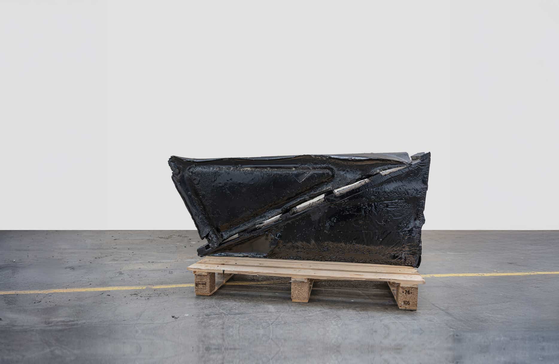 Die Kraft, die in der physischen, dreidimensionalen Asphalt-Installation steckt, ist fotografisch leider nicht abbildbar. Das Versinken eines rostigen Porsche 911 ist eine Metapher. Der Porsche, der als »Jugendlicher« über den Asphalt gerast ist, versinkt jetzt, im Alter, in ebendieser Materie, die seine schönsten Tänze möglich gemacht hat. Ein Kreislauf, der sich in allem irdischen und überirdischen wiederfindet.