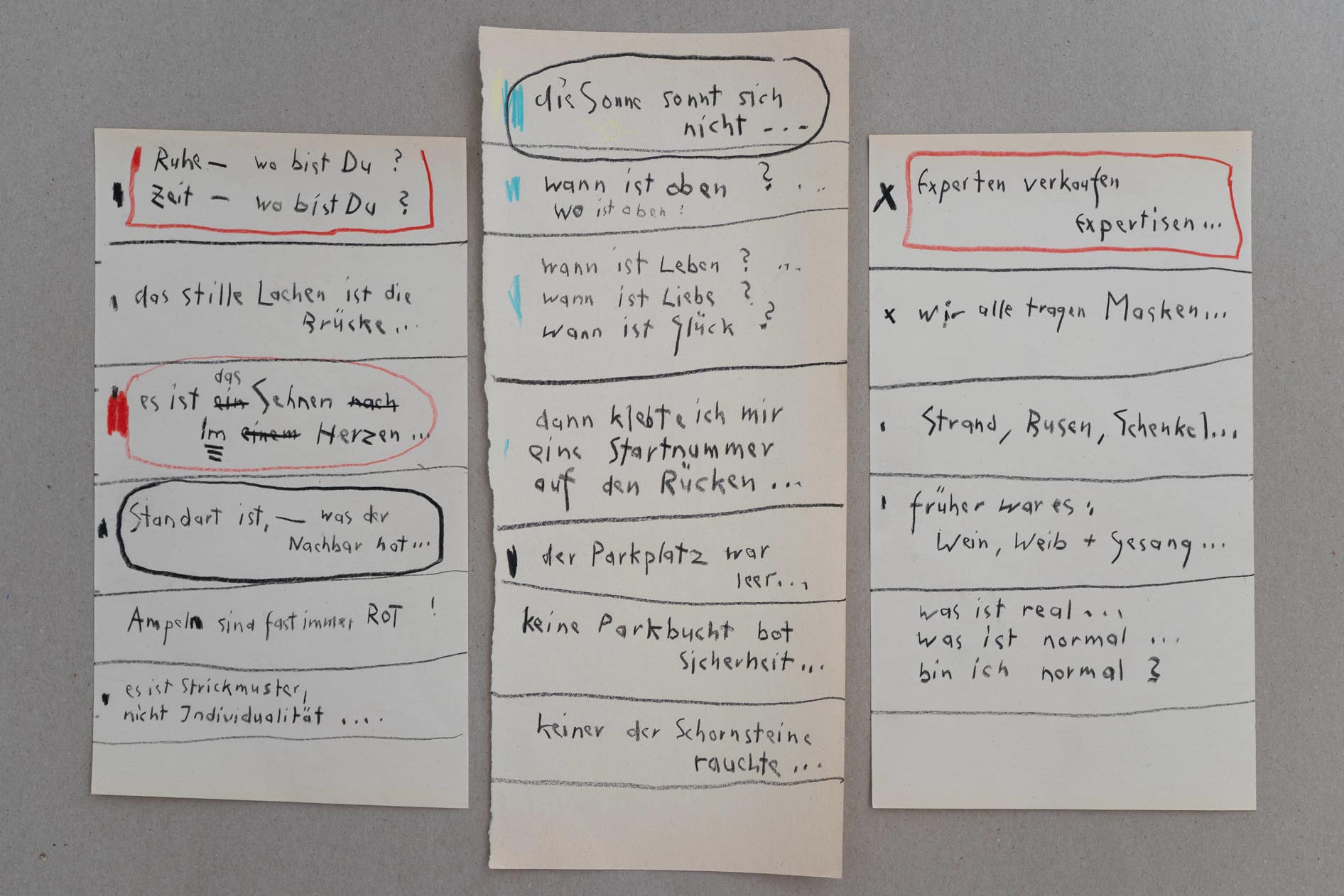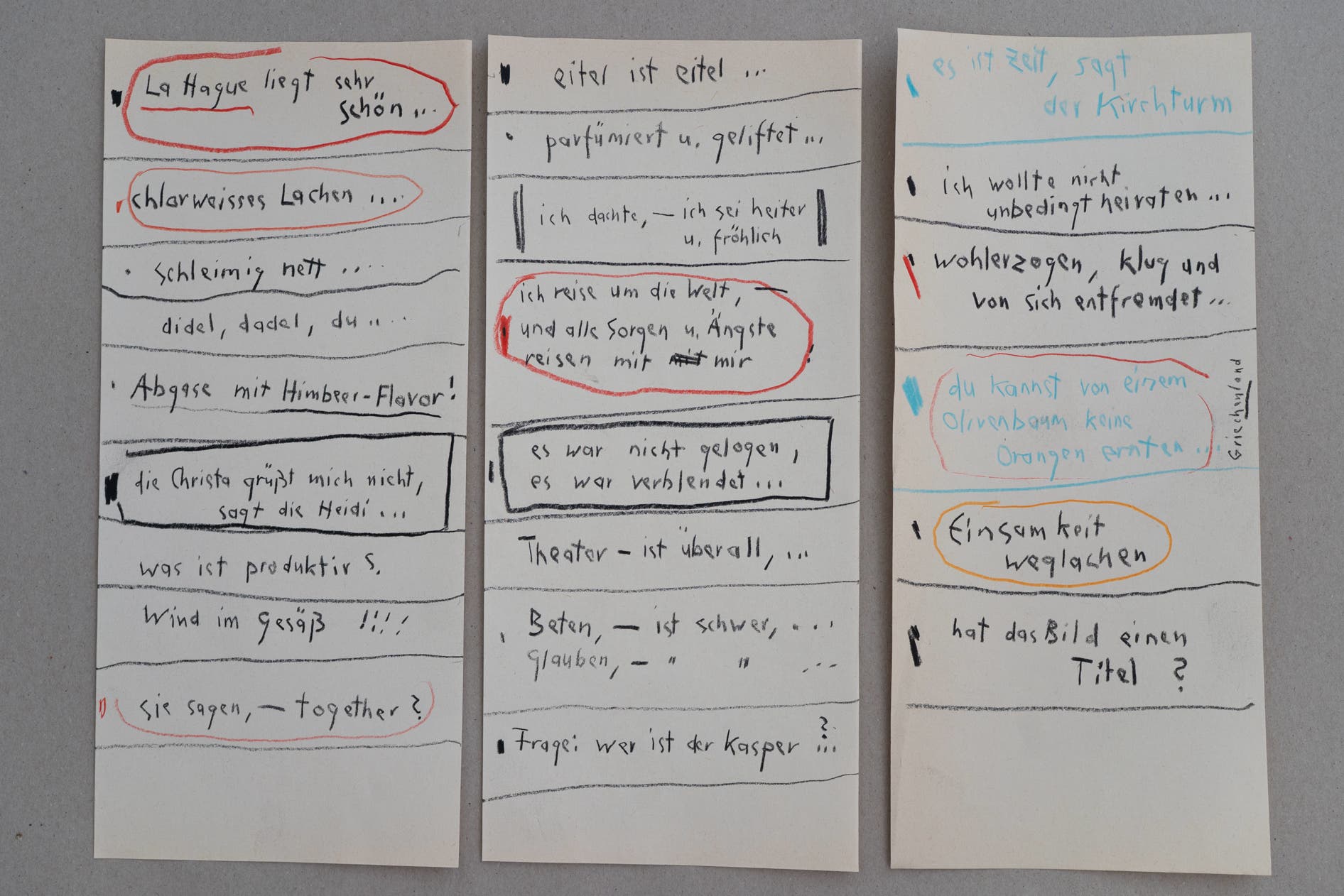 zu reflektieren, ohne Kontrolle, … später werden sie dann nicht selten zu Bildunterschriften. Ich liebe diese Art des Denkens. Diese aufgeschriebenen Gedanken erzählen mir Dinge, an die ich bewußt so nicht gedacht habe. Wahrscheinlich sind sie deshalb auch authentisch«.